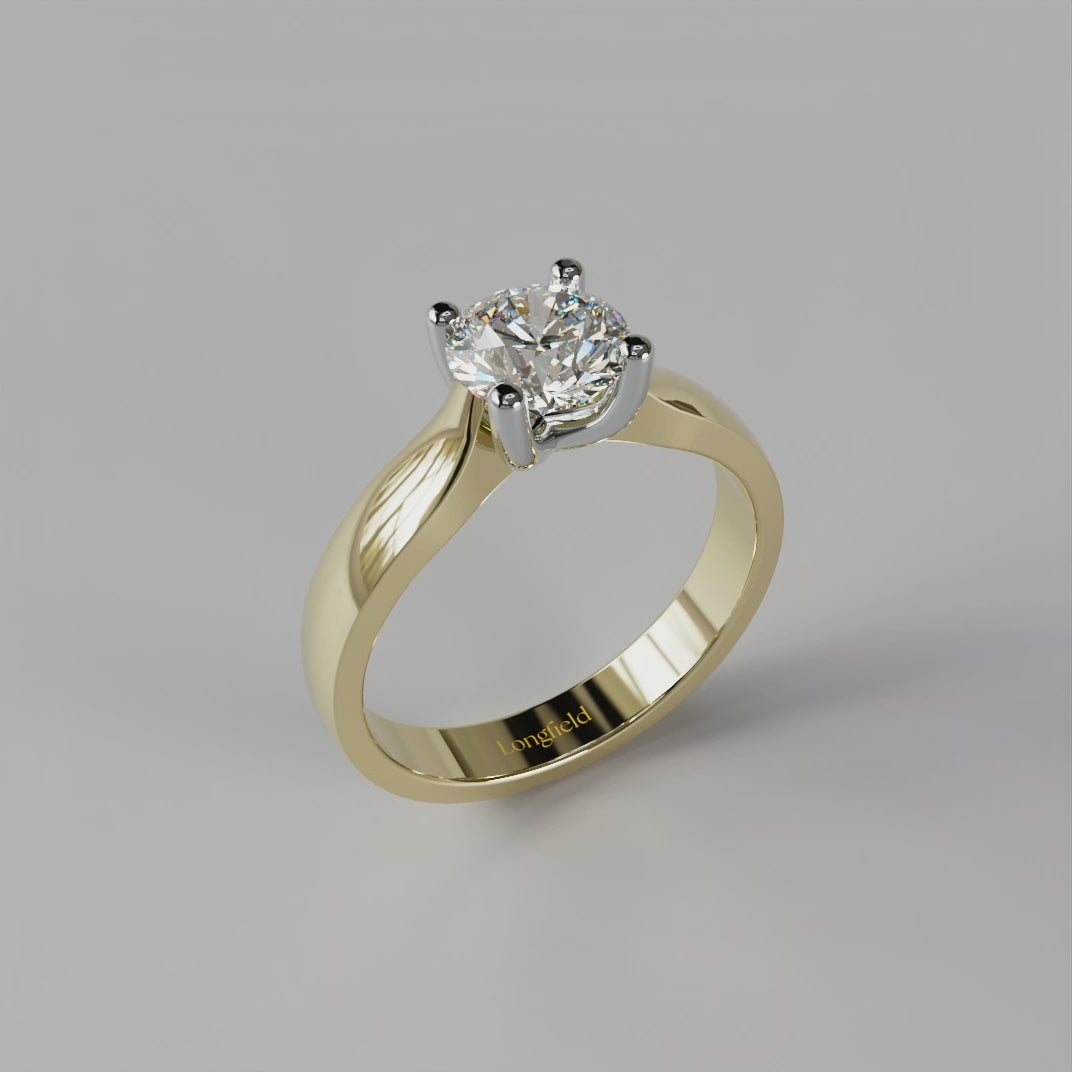 Crafted from 14k or 18k in Two Tone Yellow and White Gold featuring a 1ct VS1-E Round lab-grown Diamond.