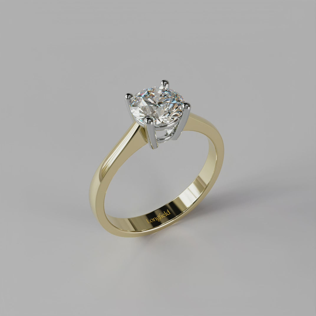 Crafted from 14k or 18k in Two Tone Yellow and White Gold featuring a 1ct VS1-E Round lab-grown Diamond.